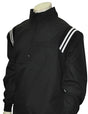 This is the traditional black half-zip baseball and softball umpire jacket (pullover) with open bottom made for chilly to cold weather with traditional white stripes over the shoulders.