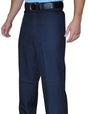 Smitty Navy Flat Front Combo Umpire Pants. Made with 100% polyester. Navy with flat front and western cut pockets. Wide 1 3/4" belt loops, button loop on back pocket, double seat panel and more room in the legs for shin guards. Can be worn behind the plate or on the bases.