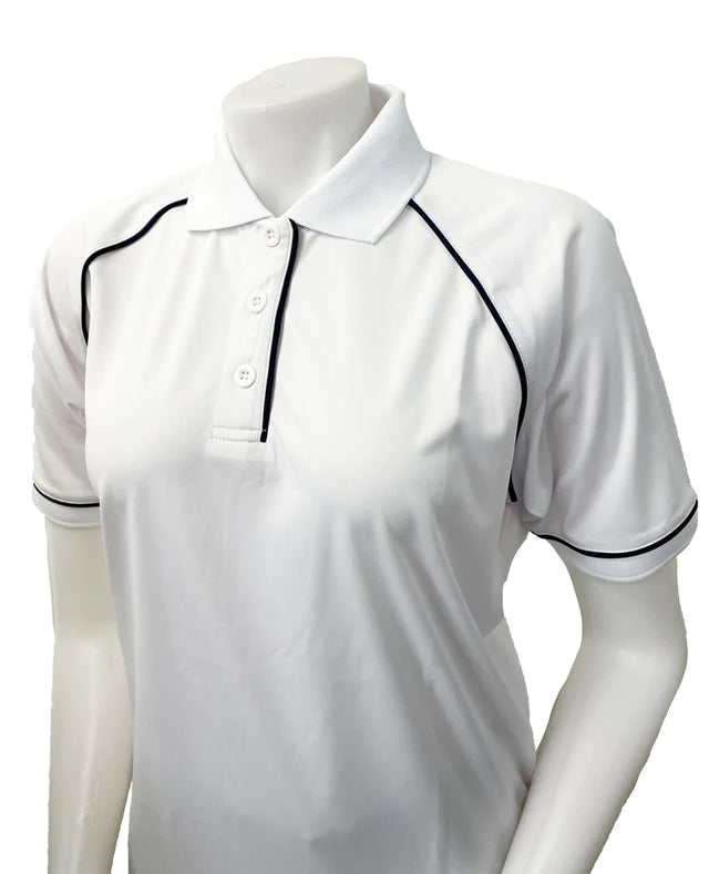 White polo shirt that is just perfect for volleyball. Ribbed collar. Our premium 100% polyester with 3 button placket and color matching buttons. Extended tail with side vents. Moisture Management fabric offers advanced technology to keep you cool, dry and comfortable. This specially engineered fabric contains properties that transports moisture away from the body, without sticking to the skin, creating a natural system for moisture evaporation. It also features anti-bacterial treatment to assure freshness.